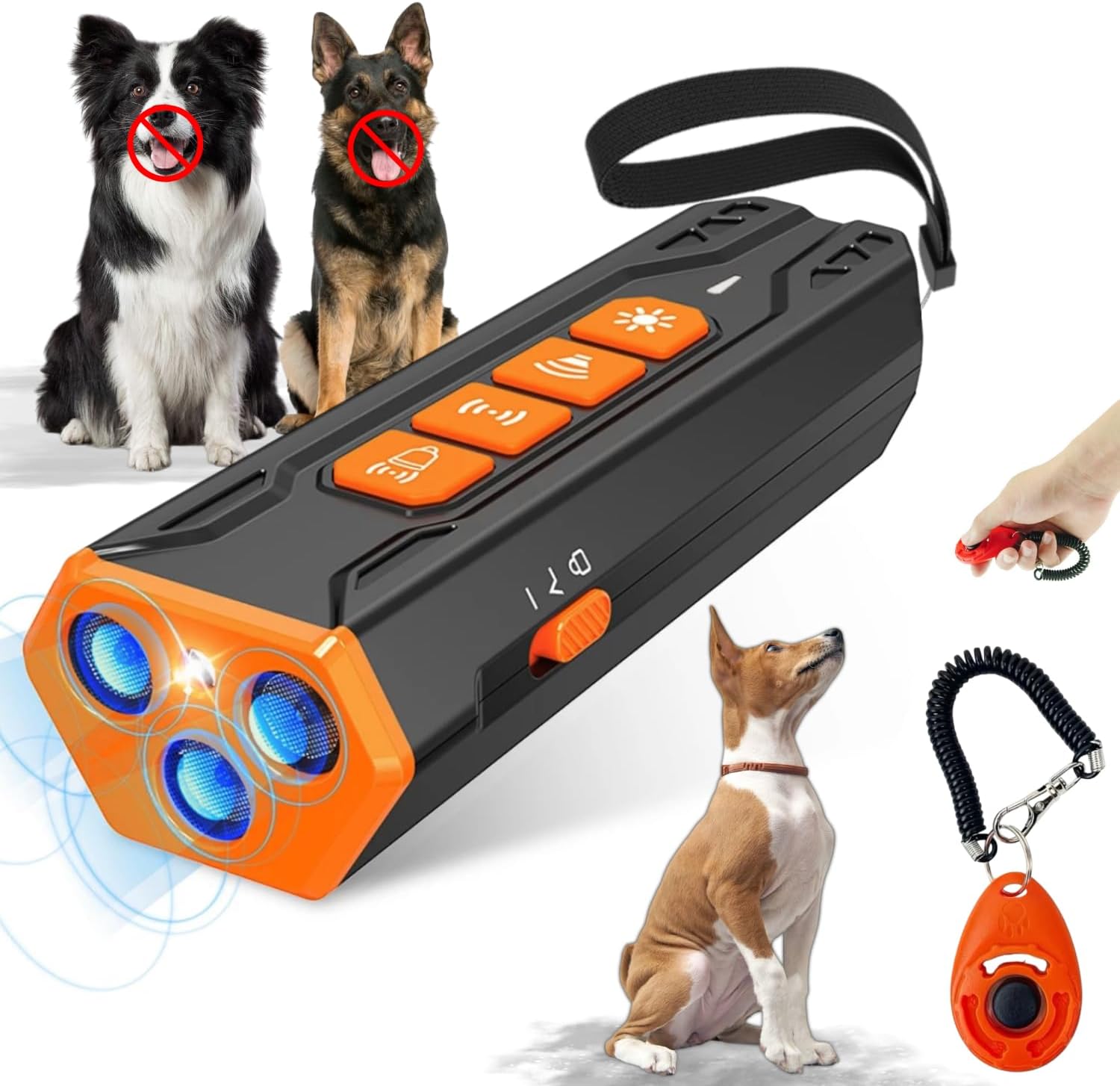 Dog Bark Deterrent Device with Training Clicker, 3X Ultrasonic Anti Barking Device for Dogs, 23FT Long Range, 6 Adjustable Modes, Rechargeable Stop Barking Dog Devices for Small, Medium & Large Dogs