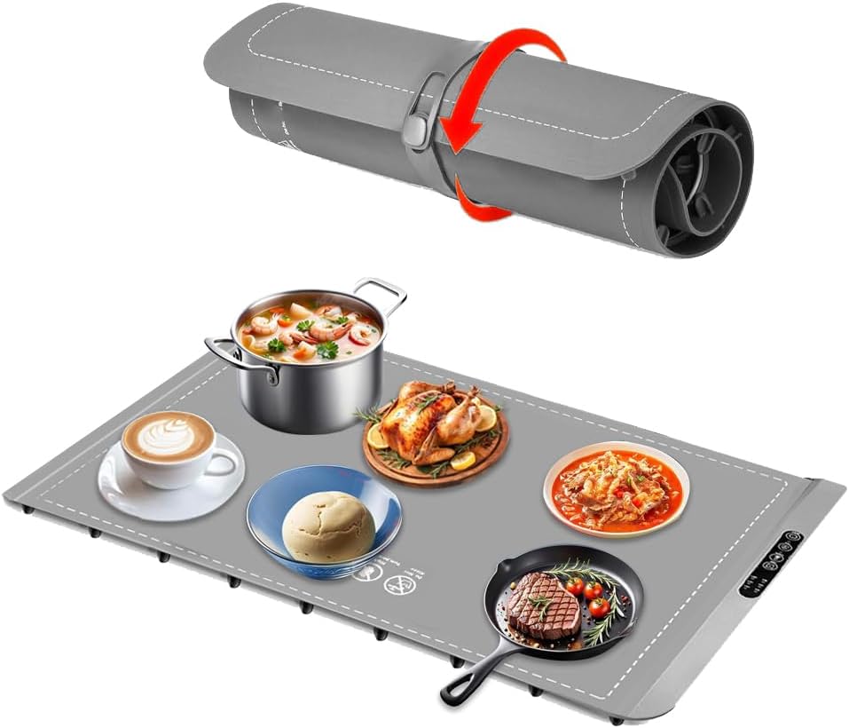 Warming Mat for Food- 3 Temp Settings Electric Food Warming Mat- Silicone Portable Warming Trays for buffets Party